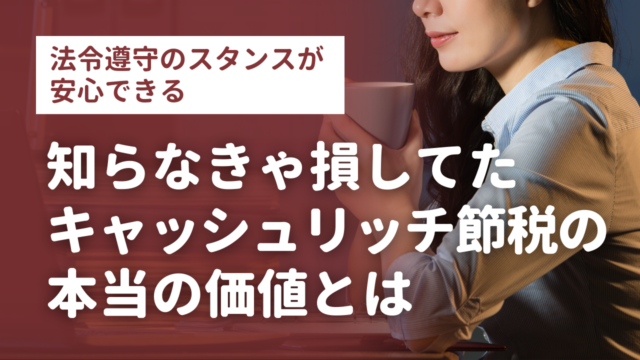 法令遵守のスタンスが安心できる!知らなきゃ損してたキャッシュリッチ節税の本当の価値とは